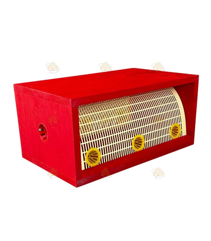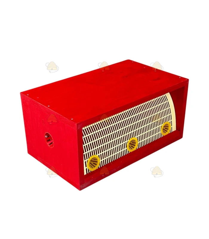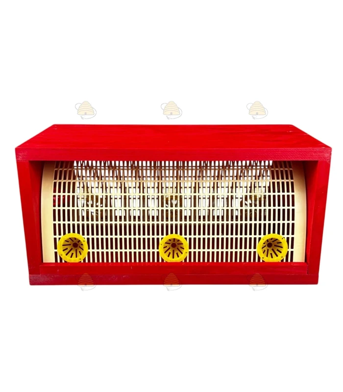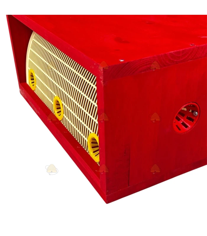 Deze Belgische hoornaarval is speciaal ontworpen en ontwikkeld als een selectieve val voor de Aziatische hoornaar. Het model is voorzien van acht conische inlaten, waarvan zes zich bevinden in het koninginnerooster en één aan elk uiteinde. Alle inlaten hebben een diameter van ongeveer 8 mm. Dankzij deze afmetingen kan de Europese hoornaar, die groter is dan de Aziatische hoornaar, niet naar binnen komen. Andere insecten die per ongeluk de val binnendringen, kunnen echter ontsnappen via het koninginnerooster. De hoornaarval is rood geschilderd, aangezien deze kleur bijzonder aantrekkelijk is voor de Aziatische hoornaar. We raden aan om de val een paar uur in de vriezer te plaatsen om de hoornaars in de val te doden.