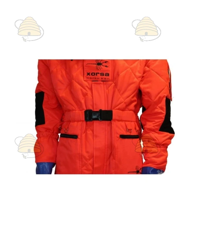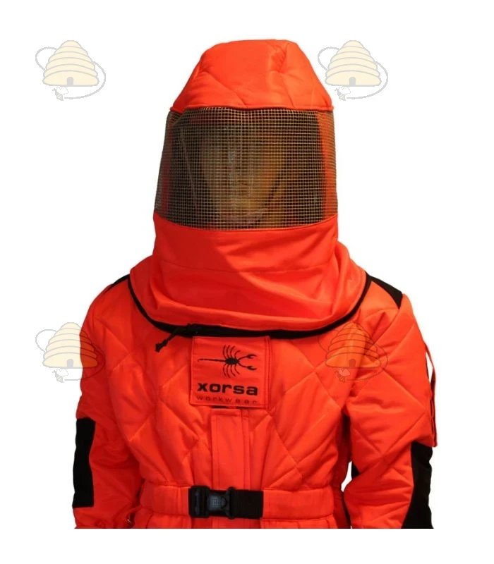 Compleet pak / overall in een rode kleur waarmee je jezelf uitstekend beschermt tegen de Aziatische hoornaar. Het pak is voorzien van handige zakken met rits en is gemaakt van een dubbele laag hele stevige stof, die zorgt voor een enorm goede bescherming. In het pak bevindt zich een verstelbare helm van kunststof, voorzien van kunststof vizier wat ervoor zorgt dat de afstand tussen het gaas en je hoofd altijd gelijk blijft en je nauwelijks door het gaas gestoken kan worden in je gezicht. Ook biedt deze kunststof helm met kunststof vizier op zich al een extra natuurlijke bescherming. De helm zit vast aan de kap met gaas d.m.v. klittenband. Het vizier zelf is gemaakt van een goede en stevige kwaliteit gaas met maar liefst 180 graden zicht. De kap is afritsbaar en kan dus ook apart gewassen worden.