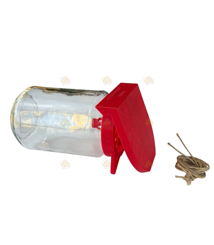 Rode hoornaarval voor op een pot van 82mm TO. Deze basis hoornaarval is zeer gemakkelijk te installeren (schroef de val op de pot en klaar) en biedt een goedkope oplossing om Aziatische hoornaars te kunnen vangen. Je kan deze val liggend, staand en hangend gebruiken. Voeg de lokstof toe op een stukje spons in de pot. De val past op potten met dekselmaat 82 mm TO.