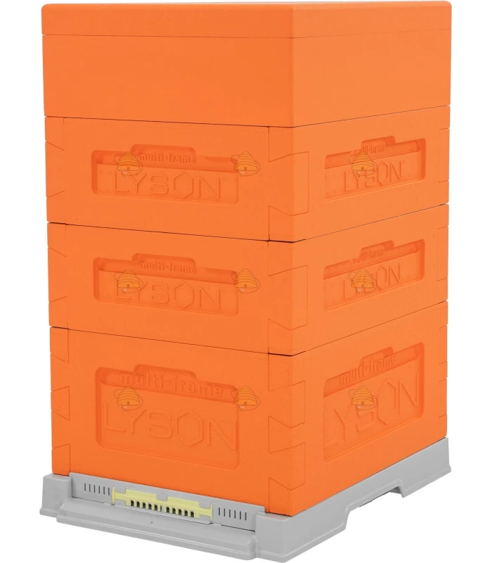 - Compatibiliteit van de bodem, voerbak en het dak. Deze onderdelen passen op elk type multi-frame bijenkast.