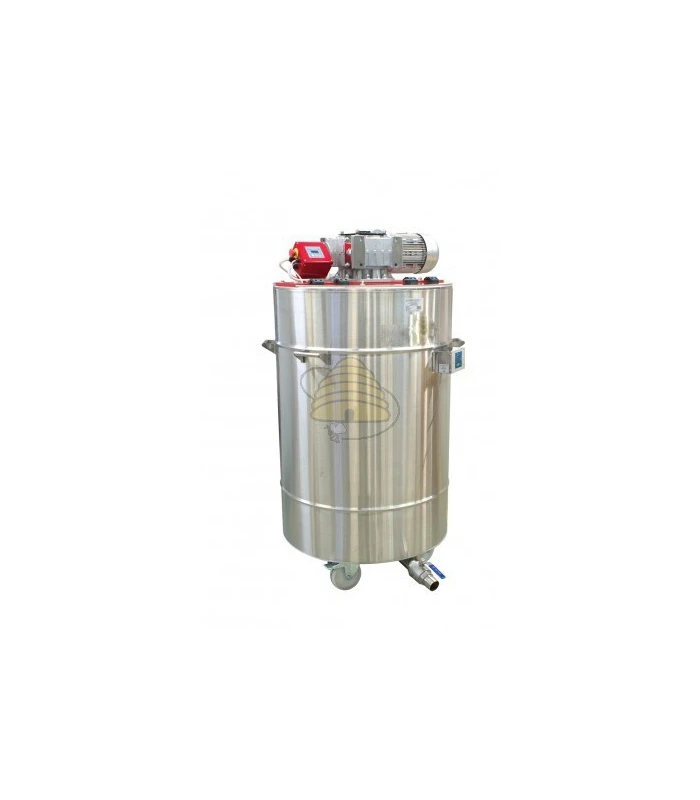 Dekristallisatie- en crèmevat, voor 600 liter / 850 kg honing, wat gemakkelijk op een lage temperatuur te verwarmen is om de gevormde kristallen te laten oplossen. Dit model is uitgerust wielen zodat je hem makkelijk kan verplaatsen. De temperatuursensor zorgt ervoor dat de honing niet te warm kan worden. Dankzij de combinatie met de honingroerder kan je met dit vat ook crèmehoning maken (interval: 15 minuten roeren, 1 uur rust). Het vat wordt bediend met een automatische controller en is gemaakt van RVS en waar nodig voedselveilig kunststof. De temperatuur kan ingesteld worden tussen de 30-55°C.