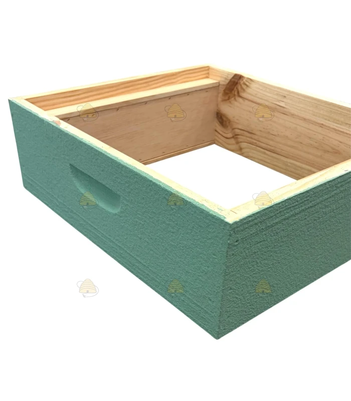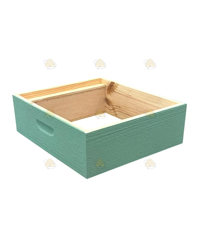 Geverfde honingkamer voor de Spaarkast bijenkast (Simplex raammaat). De honingkamer is gemaakt van grenen en is zandgeverfd in de kleur mintgroen.
