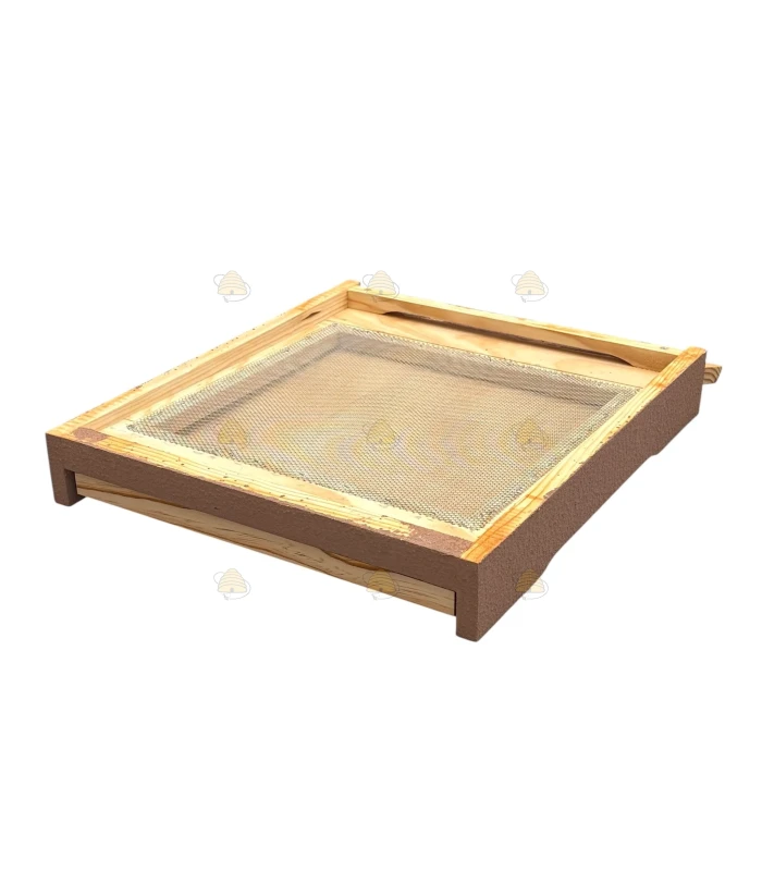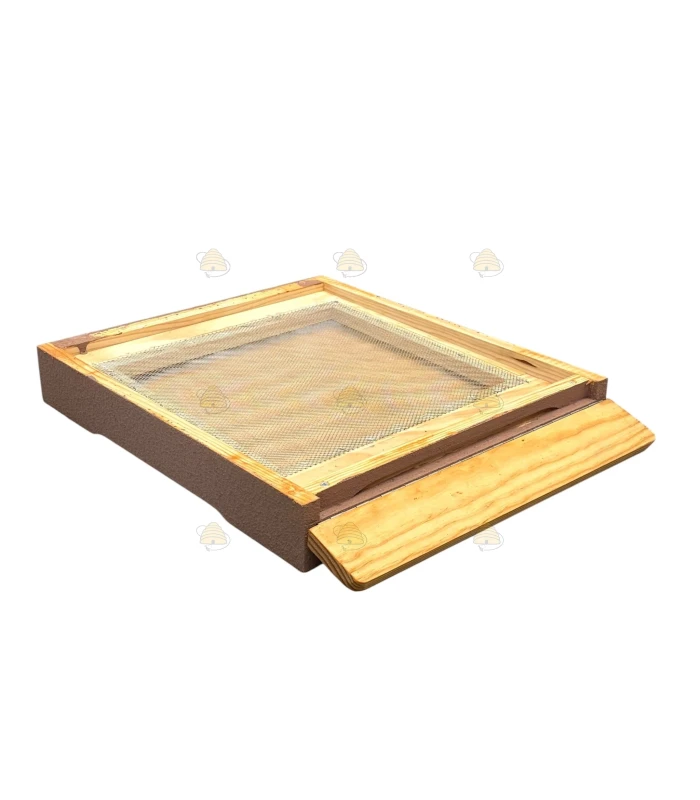 De bodem is voorzien van RVS bodemgaas, een gemonteerd vlieggat verkleinblokje en een uitschuifbare varroaplank.