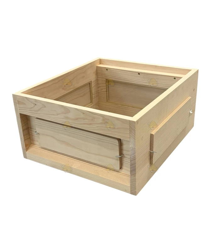 Broedkamer met kijkvensters Spaarkast Premium BeeFun®, gemaakt van een uitstekende kwaliteit grenen. Ideaal als onderdeel voor de spaarkast of om een spaarkast mee samen te stellen. Wat de broedkamer met kijkvensters bijzonder maakt zijn de mooie raampjes over de gehele breedte. Dit maakt het extra makkelijk om het volkje regelmatig te kunnen bekijken. Elke broedkamer met kijkvensters komt ook met vier plankjes om de kijkvensters af te dekken. De broedkamer heeft de afmetingen van 47 cm bij 42 cm.