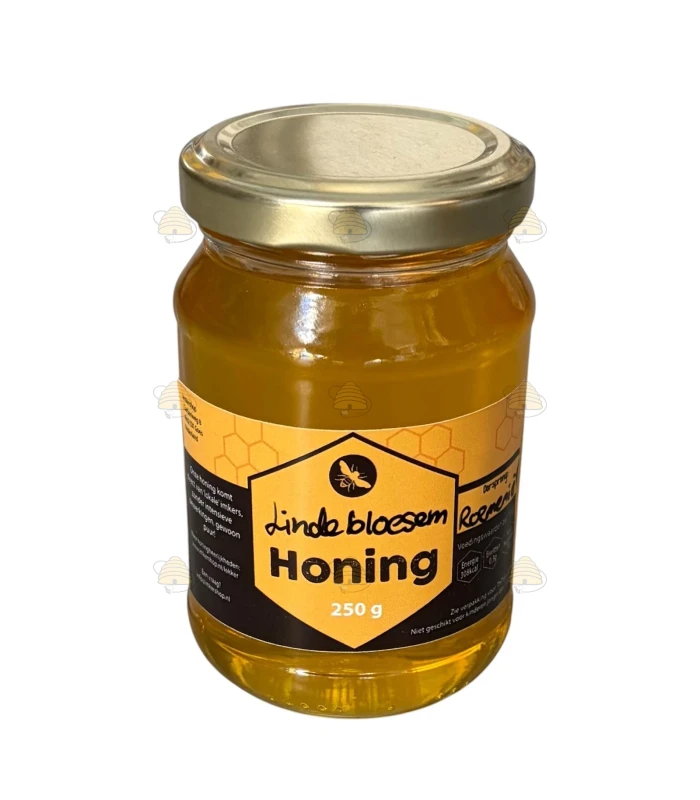 Een heerlijke pot linde honing. Deze pot bevat 250 gram vloeibare honing die door de bijen wordt gemaakt van de nectar van lindebloesems. De honing heeft een frisse, licht kruidige smaak met een zachte zoetheid.