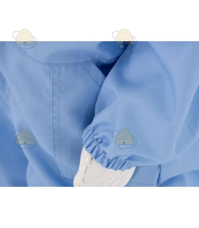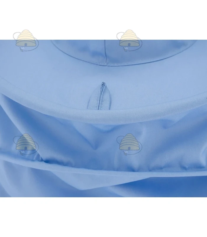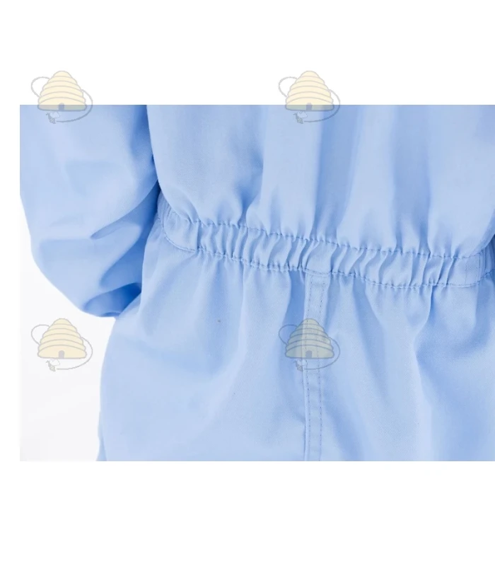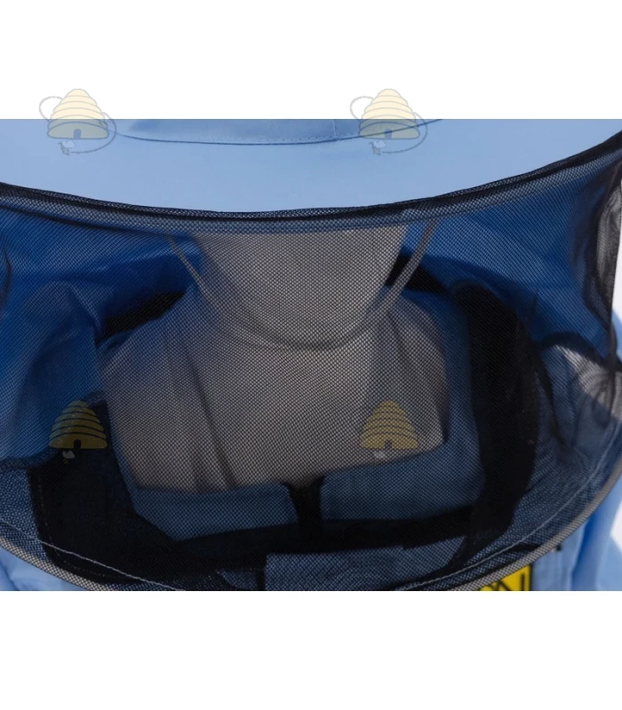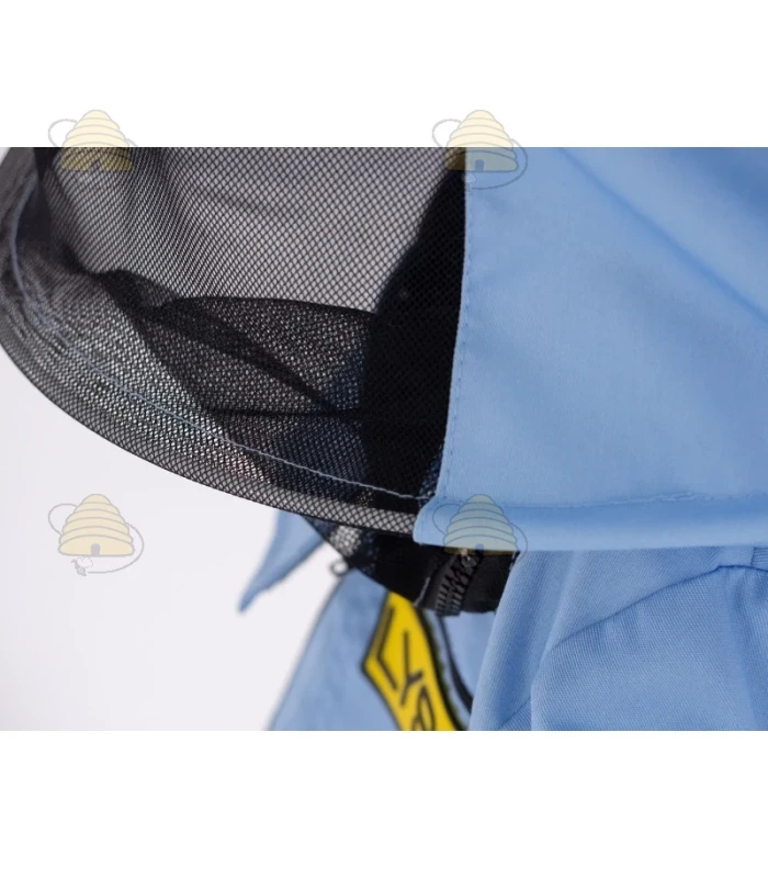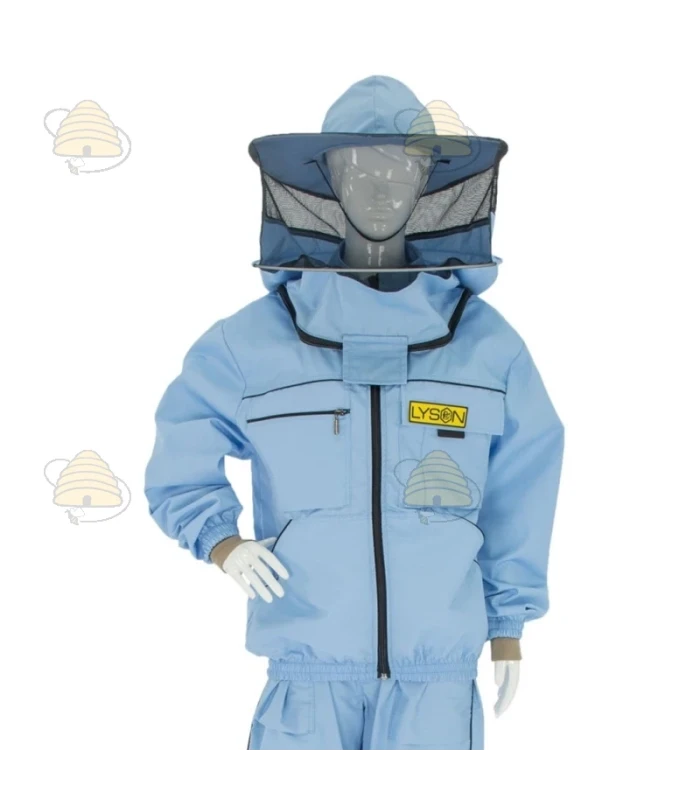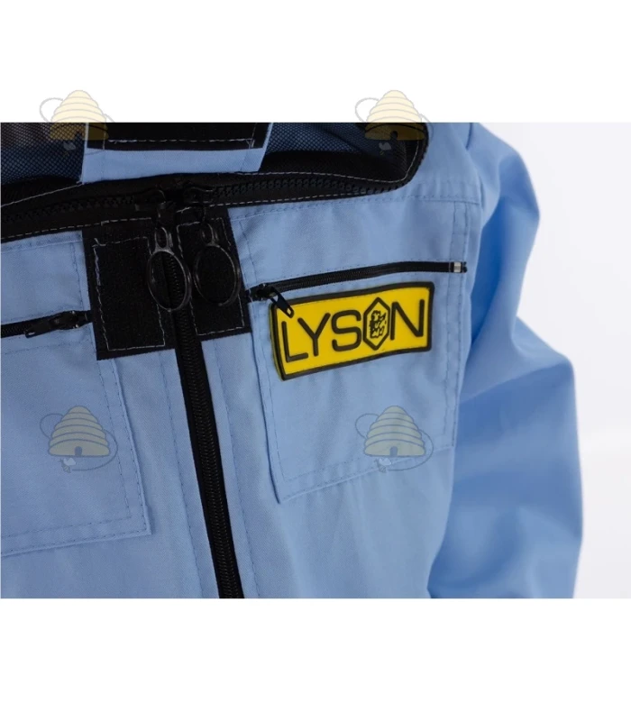 Een kleurrijk imkerjack van het merk Lyson. Het jack is lichtblauw en beschikt over een ronde kap en een elastisch boord bij de mouwen. Een duurzaam imkerjack, gemaakt van ademend materiaal.