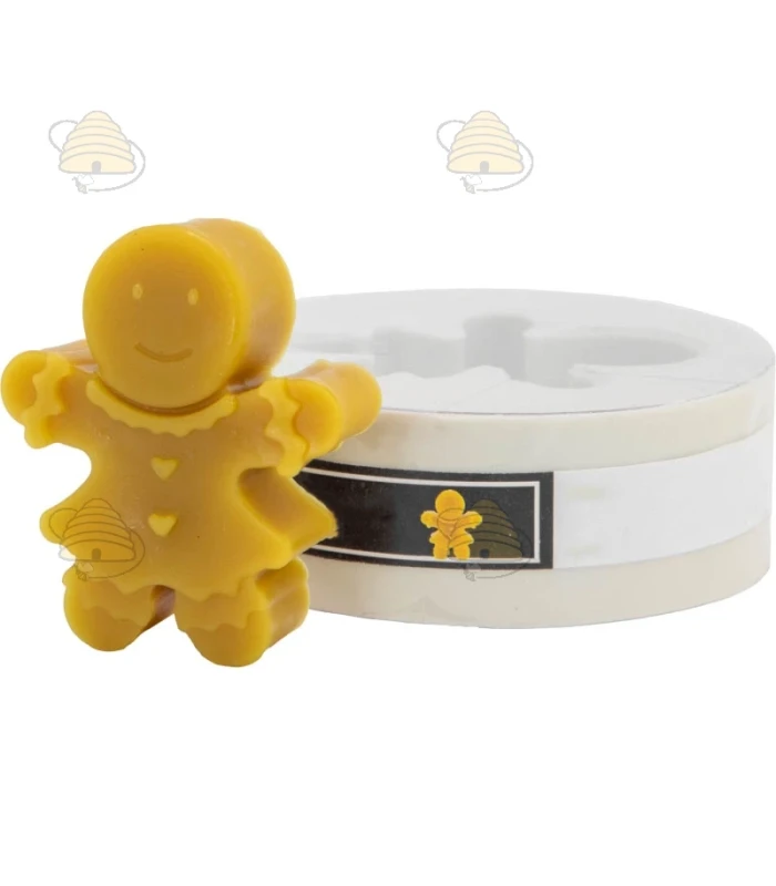 Gietvorm voor het maken van een gingerbread koekvrouwtje. De vorm is 6,5 cm lang en 5,5 cm breed. In een vorm gaat zo'n 34 gram bijenwas. Alle gietvormen zijn gemaakt van een hoge kwaliteit siliconen en dus ook minimaal 1000x herbruikbaar.