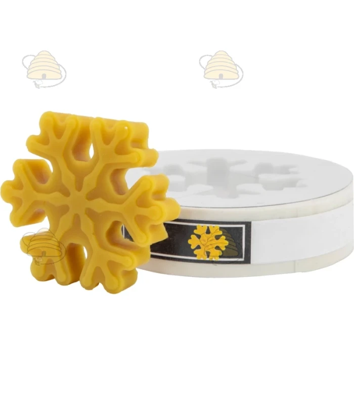Gietvorm van een sneeuwvlokje. Deze gietvorm is 6,5 cm breed in diameter en 1,2 cm hoog. Voor het maken van de vorm heb je zo'n 22 gram bijenwas nodig. Alle gietvormen zijn gemaakt van een hoge kwaliteit siliconen en dus ook minimaal 1000x herbruikbaar.