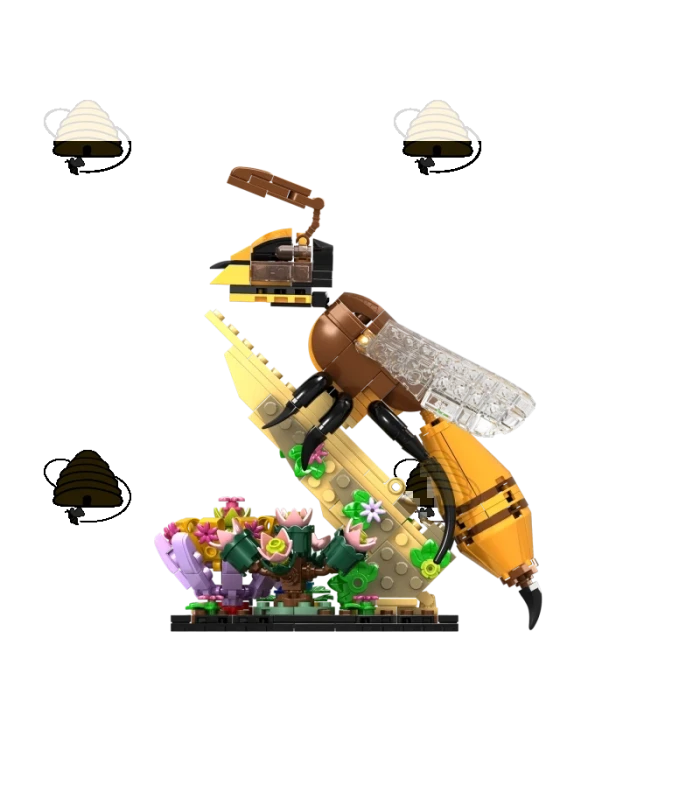Bouwstenen set van een honingbij die op zoek is naar nectar. Deze set bestaat uit 422 blokjes en geeft een realistisch beeld van de anatomie van de honingbij.