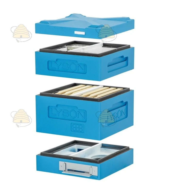 Dadant Blatt teeltkastje, voorzien van 1/2 modulaire Dadant ramen met 145 mm hoogte. Het kastje is blauw geschilderd en gemaakt van zeer stevig polystyreen materiaal. De ramen kunnen gekoppeld worden om er zo een volwaardig Dadant Blatt raam van te maken. Het raam kan vervolgens in een Dadant Blatt bijenkast geplaatst worden.