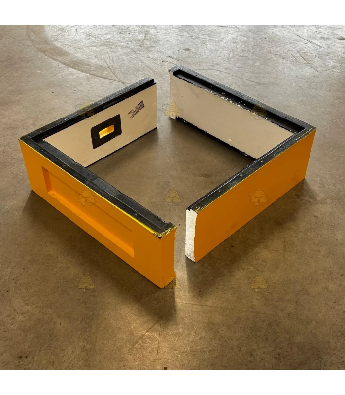 Honingkamer voor de geel gelakte polystyreen bijenkast.