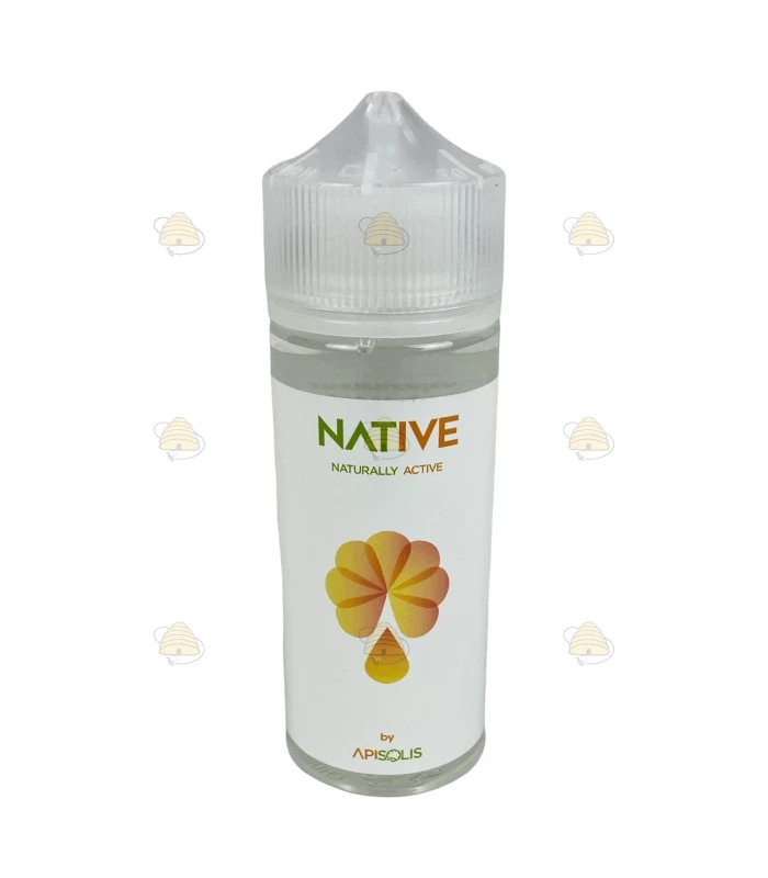 Apisolis Native verdampingsvloeistof 120 ml. Met een flesje van 120 ml kan je ongeveer 250 keer je bijenvolk bezoeken. Deze vloeistof is gemaakt op basis van biologische oorsprong en essentiële oliën die het bijenvolk kalmeren en geen schadelijke rook veroorzaken voor zowel de imker als de het bijenvolk.