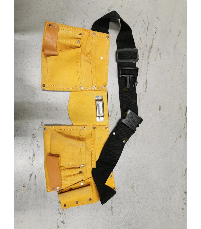 Werkschort gemaakt van leer. Met dit schort voor om je middel kan je gemakkelijk al je spullen meenemen naar je bijenkast. Het schort is voorzien van 11 zakken in verschillende groottes en heeft een stevige verstelbare band. Gemaakt van bruin leer met een stoffen band.
